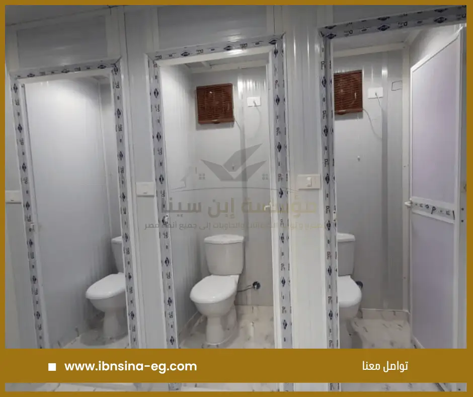 نتفهم في “مؤسسة ابن سينا” الحاجة الماسة لوحدات صحية آدمية ونظيفة في المواقع والمشاريع. لذلك، نتخصص في تصنيع وتوريد كرفانات الحمامات (الثابتة والمتحركة) بأعلى معايير الجودة الصحية. نجهز الوحدات بتشطيبات داخلية سهلة التنظيف ومقاومة للرطوبة، مع تزويدها بكافة التوصيلات الصحية (سباكة، صرف) والكهربائية وأنظمة التهوية الفعالة. نضمن لك حلاً عملياً وسريعاً يوفر بيئة صحية لائقة للعاملين أو الزوار في المواقع الهندسية، الفعاليات، والمناسبات.