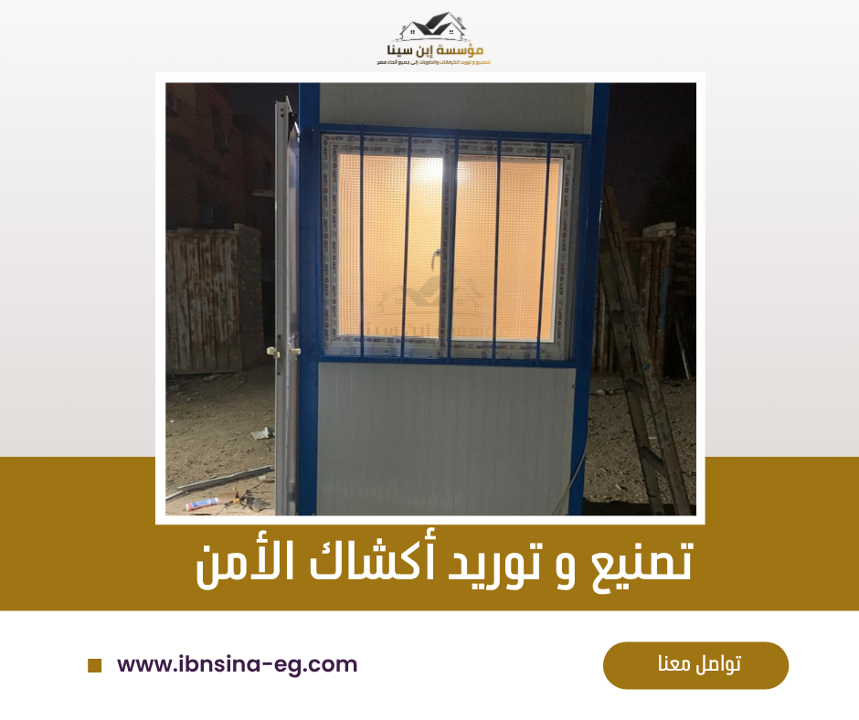 نتخصص في “مؤسسة ابن سينا” في تصميم وتصنيع أكشاك الحراسة والأمن، المصممة خصيصاً لتوفير أقصى درجات الحماية والرؤية الواضحة. نستخدم هياكل معدنية صلبة معزولة بالكامل ضد الحرارة والصوت، ومزودة بنوافذ واسعة تتيح تغطية بصرية شاملة (رؤية 360 درجة) للموقع. نجهز الكشك بكافة التوصيلات الكهربائية اللازمة ومكتب داخلي (كونتر) لضمان بيئة عمل مريحة وآمنة للحارس. نضمن لك منتجاً يجمع بين المتانة، سرعة التوريد، والجاهزية الفورية للتركيب في المجمعات السكنية، المواقع الإدارية، والمشاريع.